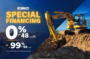 Kobelco Construction is renowned for its reliable, durable, and advanced machines. With Kobelco Construction offering 0% for 48 month financing on select machines, now is the perfect time to invest in a Kobelco machine.